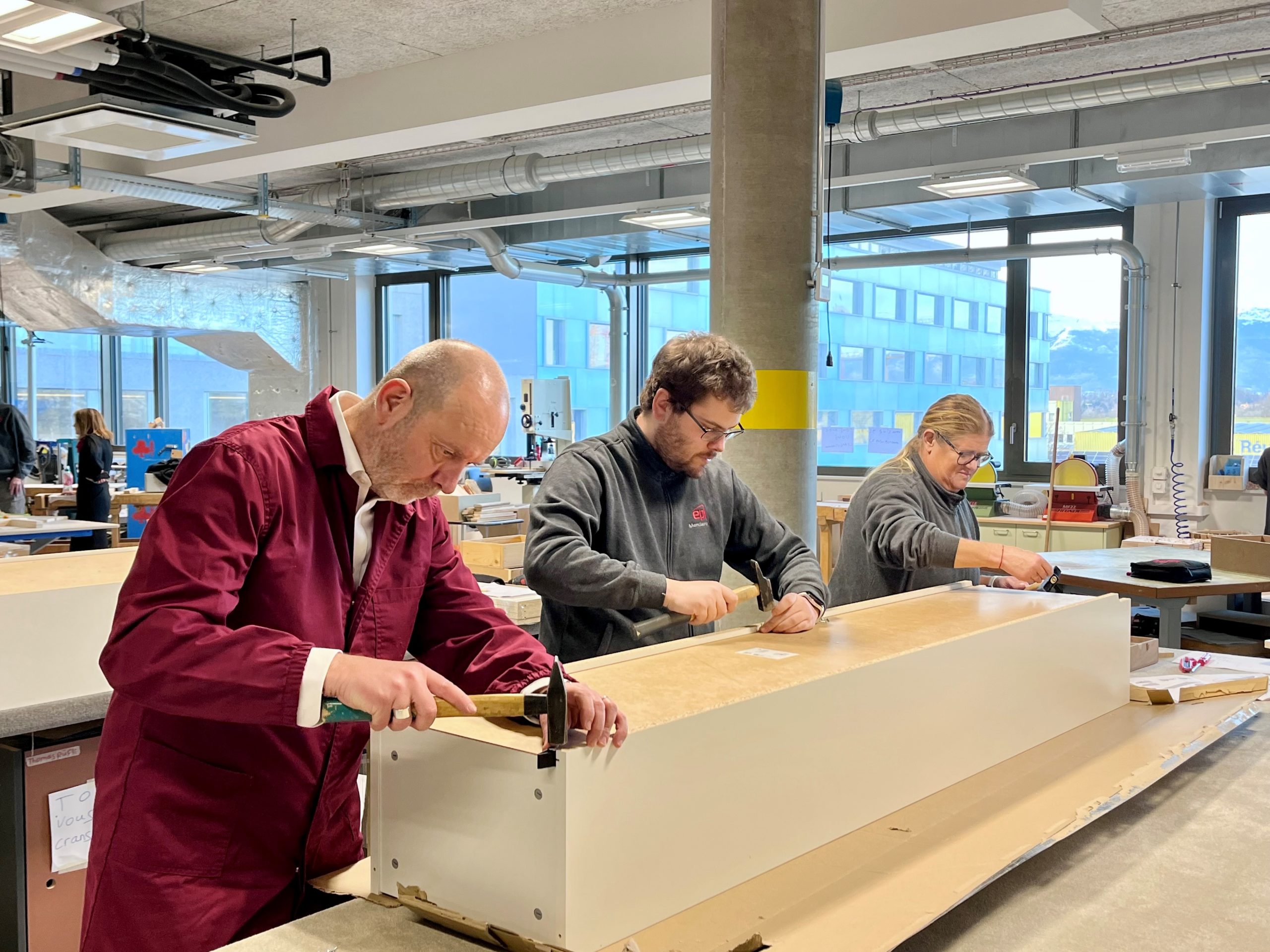 Au fil de l’après-midi, j’ai rejoint les équipes de l’atelier mécanique pour l’assemblage de conteneurs de tri, puis celles de l’atelier menuiserie pour le montage de meubles. Des gestes concrets, un savoir-faire exigeant, et surtout un accompagnement sur mesure qui vise une intégration dans la durée dans le monde du travail.